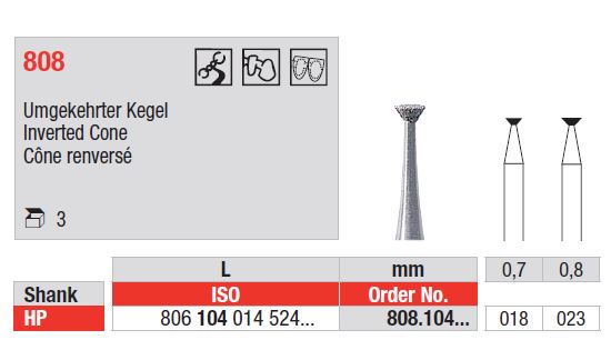 Fordított fejű gyémánt HP-fúrók 808 - Forgó gyémántszerszámok precíz előkészítéshez
