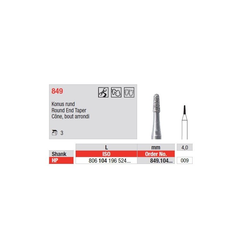 Gyémántfúrók lekerekített fejű kúpos HP 849 - 3 db.