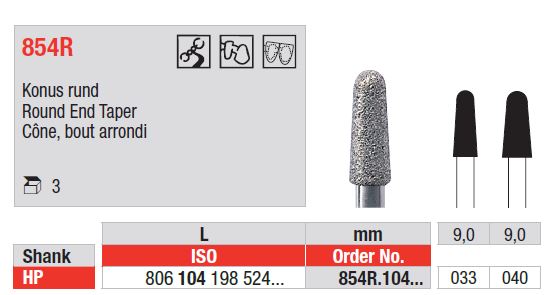 Kerek fejű gyémántvágó HP 854R - Forgó gyémántszerszámok precíz előkészítéshez