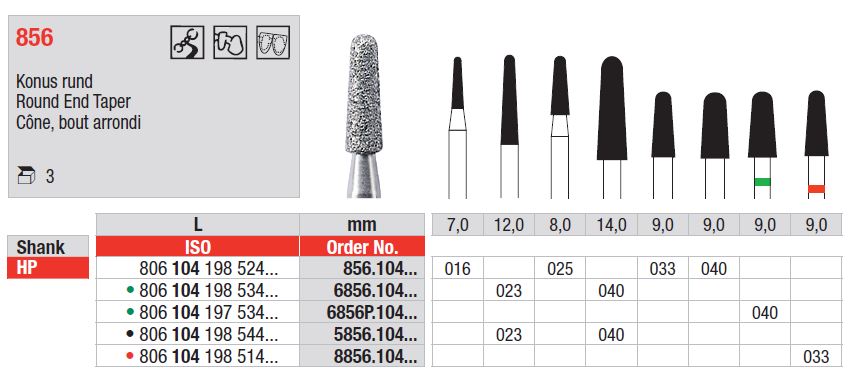 Kerek fejű gyémántvágók HP 856 - Forgó gyémántszerszámok precíz előkészítéshez