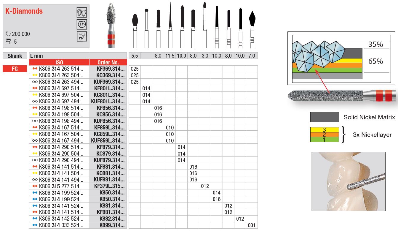 Az új generációs K-Diamant fúrók laboratóriumi turbinákhoz speciális bevonatuknak köszönhetően nagyobb anyageltávolítást és hosszabb élettartamot biztosítanak.