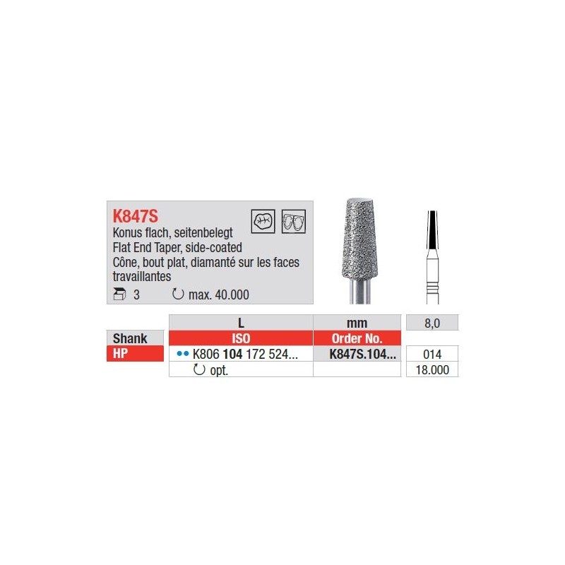 K-Diamond lapos fejű marók, oldalsó bevonattal HP K847S