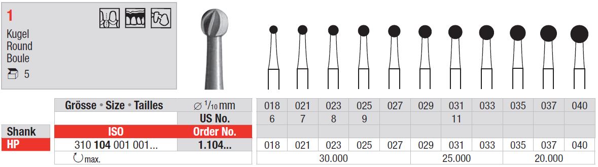 - Max. sebesség: 25 000 fordulat/perc a következő kódoknál: 029, 031, 033