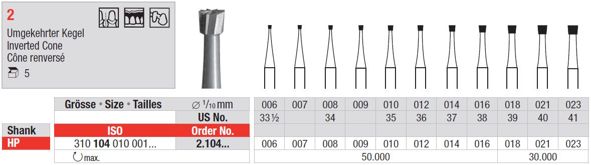 - Max. forgási sebesség: 30 000 / perc - 018, 021, 023