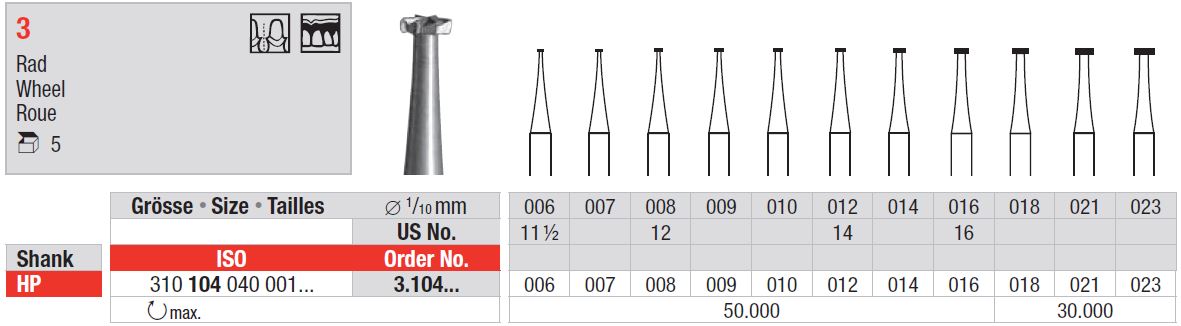 - Max. fordulatszám: 50 000 fordulat/perc – 006, 007, 008, 009, 010, 012, 014, 016