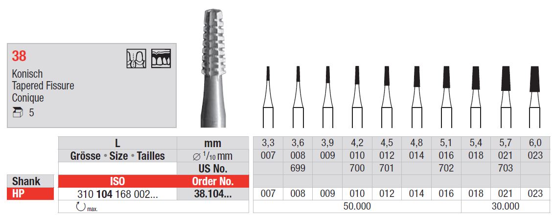 - Max. forgási sebesség: 30 000 / perc - 018, 021, 023