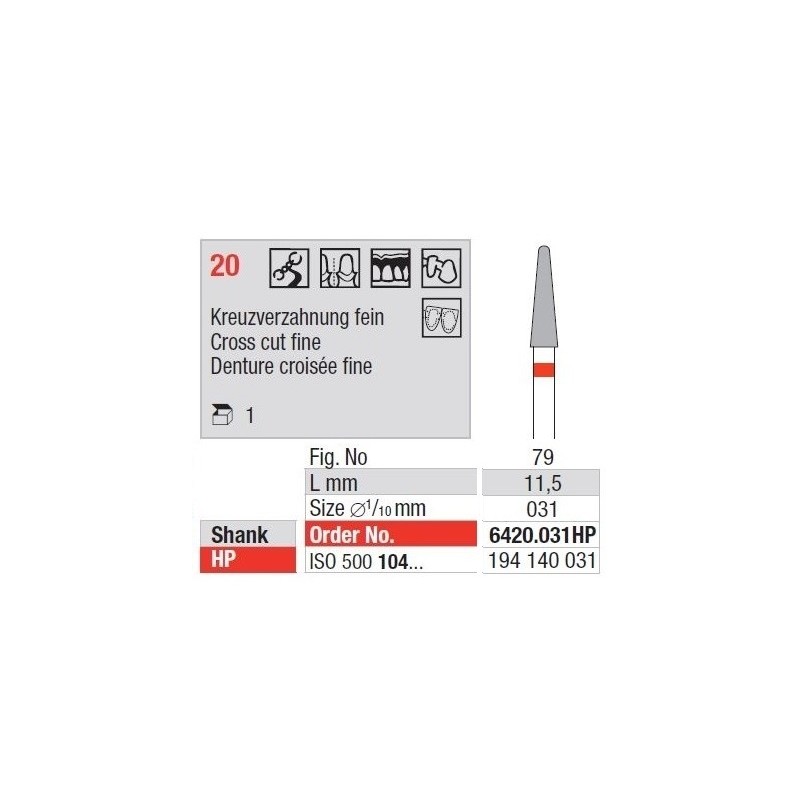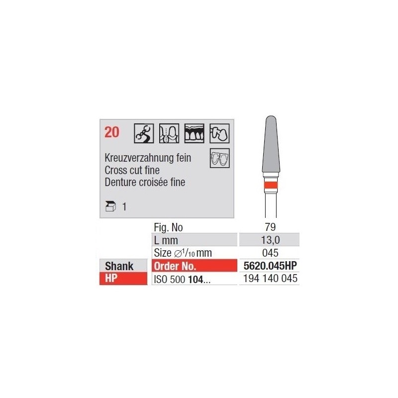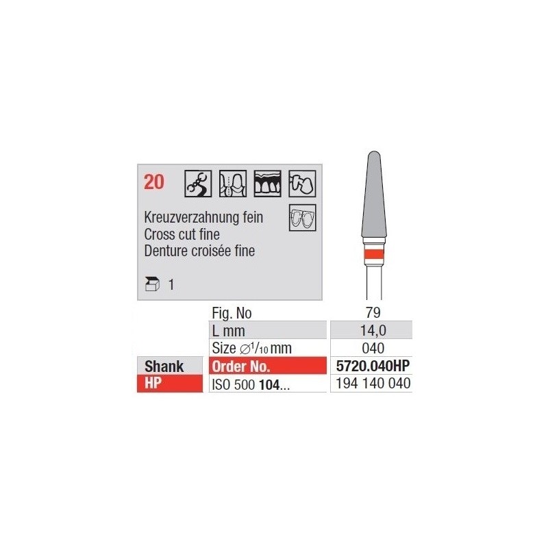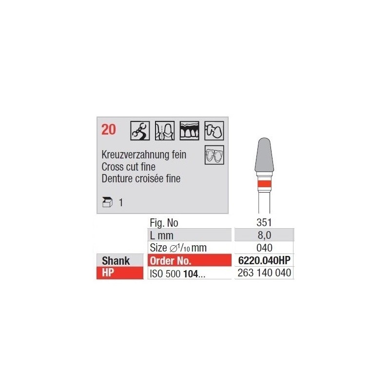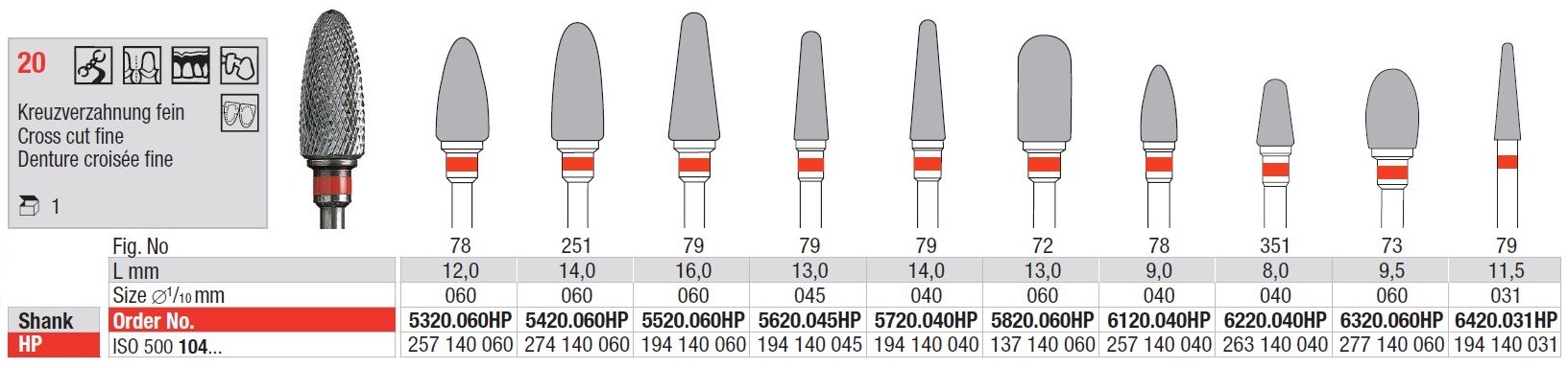 TC Cutter Cross Cut Fine 20 – Finom vágó fúrók volfrámkarbidból, minden fogászati anyaghoz alkalmasak. Eltávolítják a felületi anyagot és lehetővé teszik a megfelelő működést bármilyen szerkezeten.