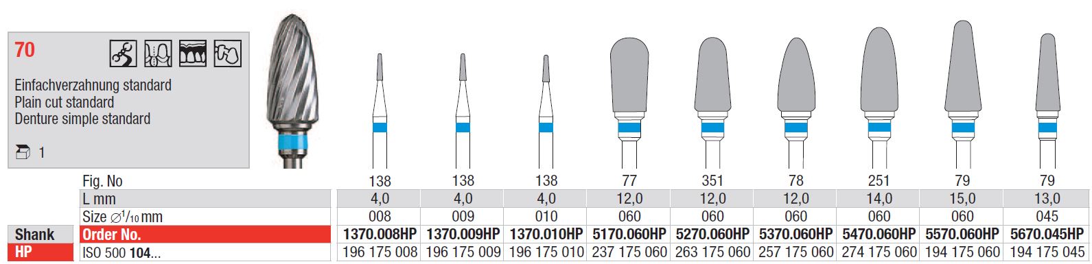 TC Cutter Plain Cut Standard 70 – Minden fogászati anyaghoz alkalmas. Sima felületet biztosít, különösen a gyanta alapú anyagok esetében, és csökkenti az utómunkálatok szükségességét.