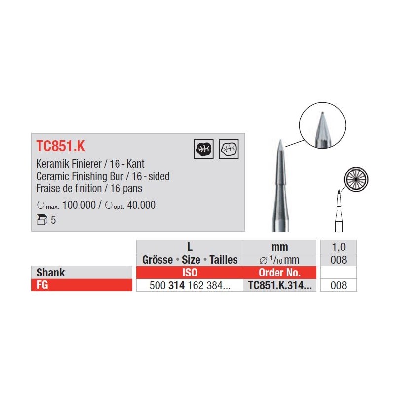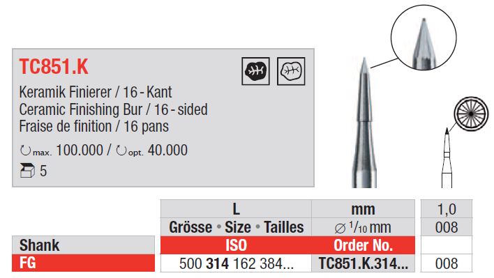 TC851.K FG 16 oldalas finomító eszközök – Az elsődleges barázdák simításához és mélyítéséhez, valamint másodlagos barázdák kialakításához. Ideális minden típusú kerámia és kompozit anyaghoz.