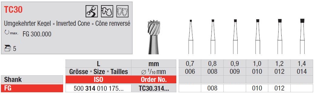 TC30 FG maró - fordított fej - FG: Maximum 300 000 fordulat/perc
