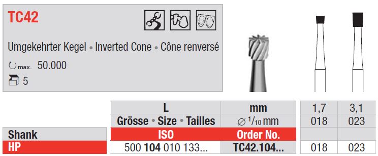 TC42 HP maró - fordított fej - Maximális fordulatszám: 50 000 fordulat/perc