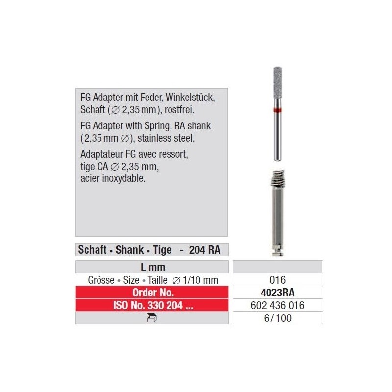 FG 4023 RA adapter – FG adapter rugóval, RA rúddal (2,35 mm), rozsdamentes acélból.