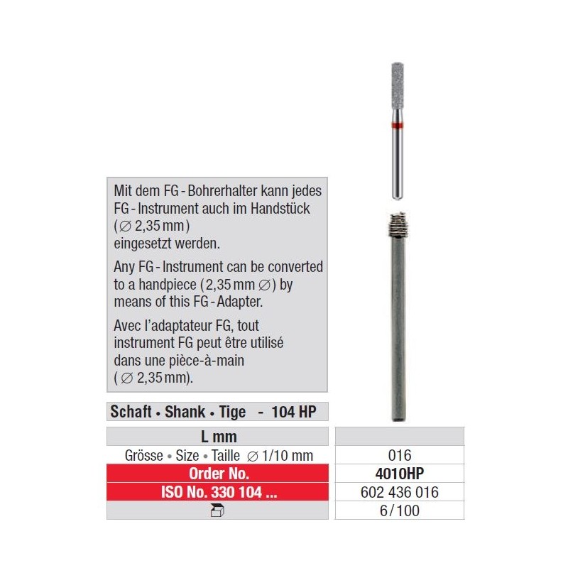 FG 4010 HP adapter – Ezzel az FG adapterrel bármely FG szerszám kézidarabká (2,35 mm) alakítható.