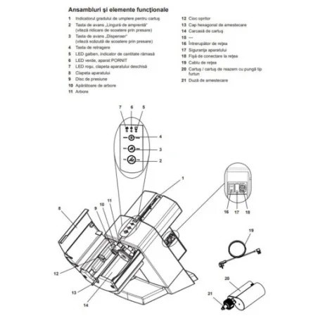 - Az átlátszó műanyag fedél lehetővé teszi az anyag mennyiségének és a patronban maradt anyag szintjének azonnali ellenőrzését.