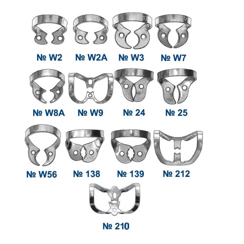- Diga szorító W56 – nagy molárisokhoz, merev, szögletes „állkapcsokkal” (fésűs állkapcsok, moláris gyökerekhez)