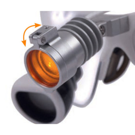 A lámpa pozíciójának a vízszintes tengelyhez képest 30°- 45°-ra történő beállításával, a fogorvos jobban rálát a területre a helyes, egyenes testtartás megtartása mellett.