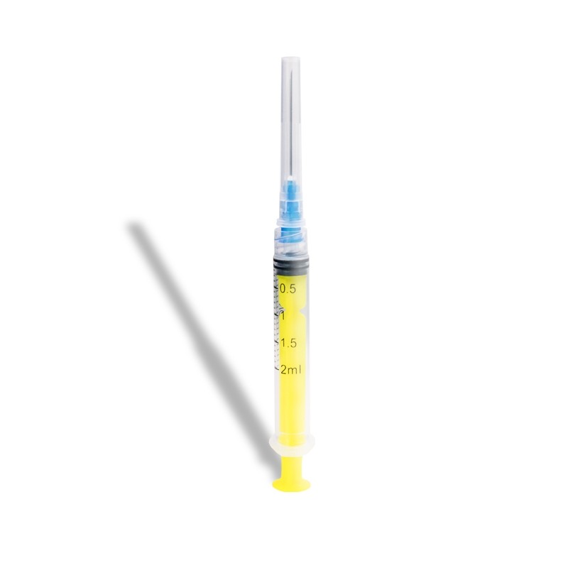Dr. Mayer sárga fecskendő 2 ml-es tűvel – egyszer használatos fecskendő levehető 23G tűvel, 0,6 x 32 mm