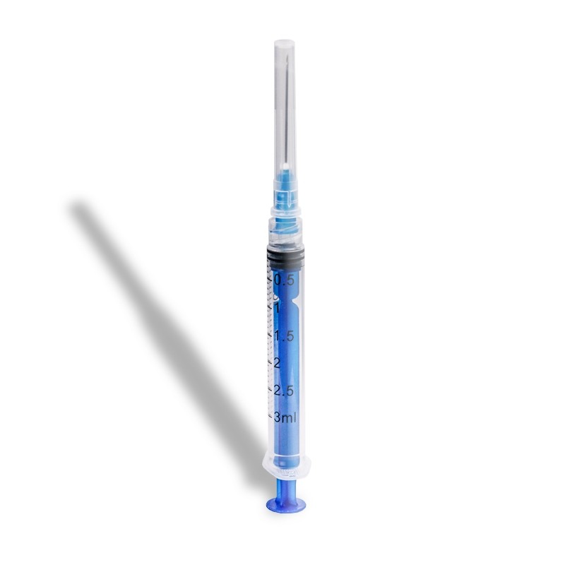 - Dr. Mayer 3P 3 ml-es kék fecskendő 23G Luer Lock tűvel – 1 doboz x 100 fecskendő