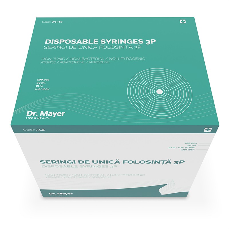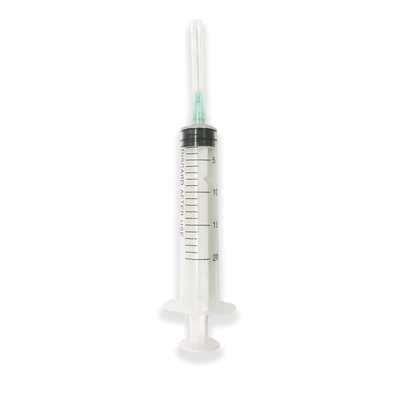 Fehér fecskendő 20 ml-es tűvel – egyszer használatos fecskendő levehető 21G tűvel, 0,8 x 40 mm