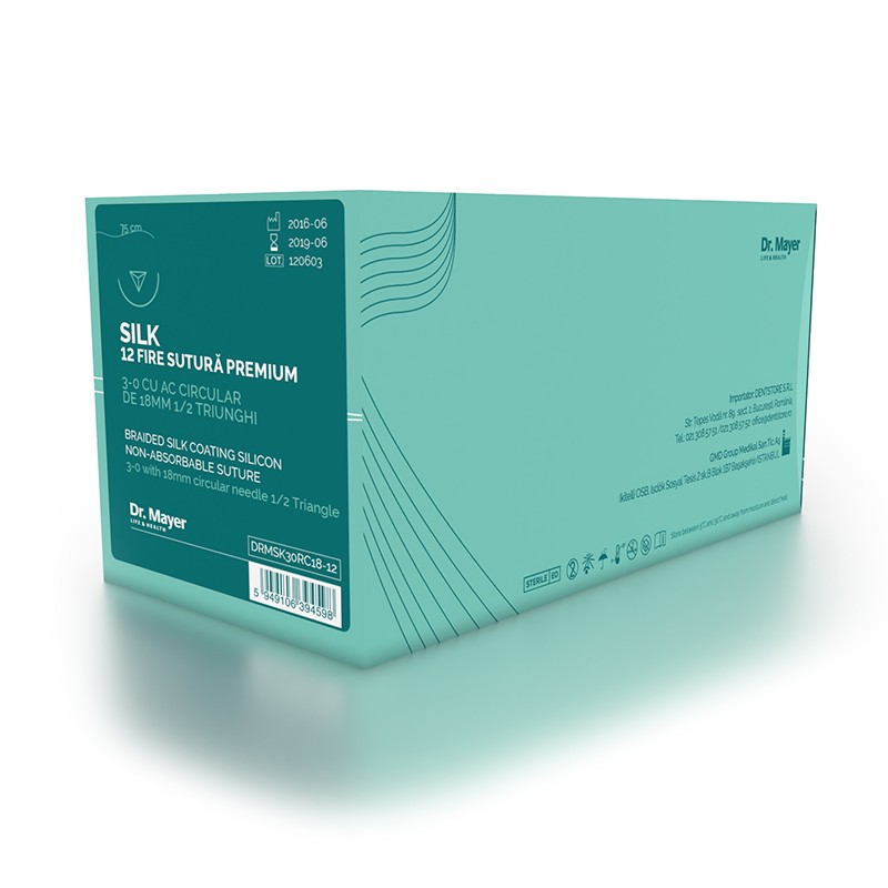 12 Fire Sutura Premium Silk 3-0 Cu Ac de 18mm 1/2 Triunghiular Dr. Mayer