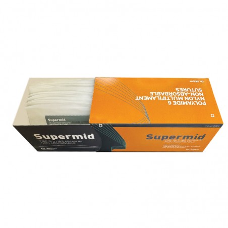 - 12 Supermid PAM 4/0 varrófonal 20 mm-es, ½ kör keresztmetszetű tűvel – 1 doboz x 12 fonal