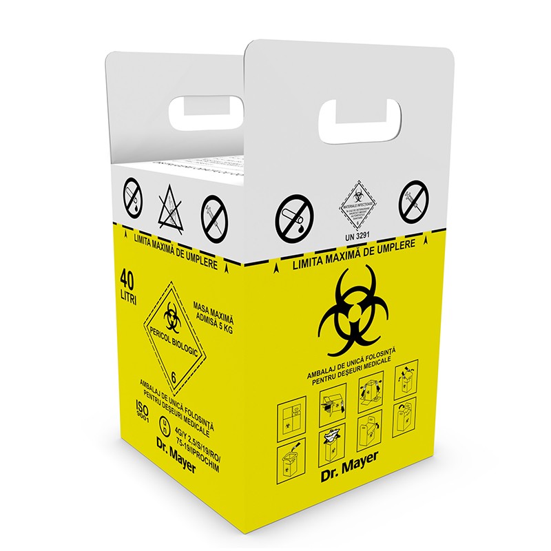 - 40 literes kartondoboz zsákkal a fertőző orvosi hulladékok gyűjtéséhez (zsák mellékelve). - 1 db