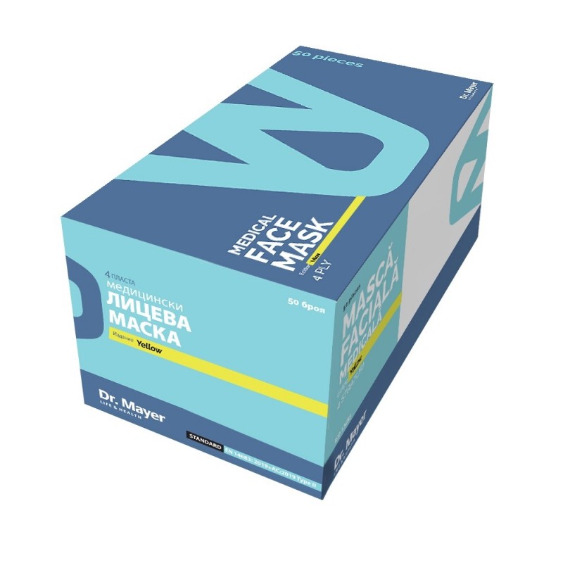 - Dr. Mayer 4 rétegű, teljes színű sárga orvosi maszk – 1 doboz x 50 darab