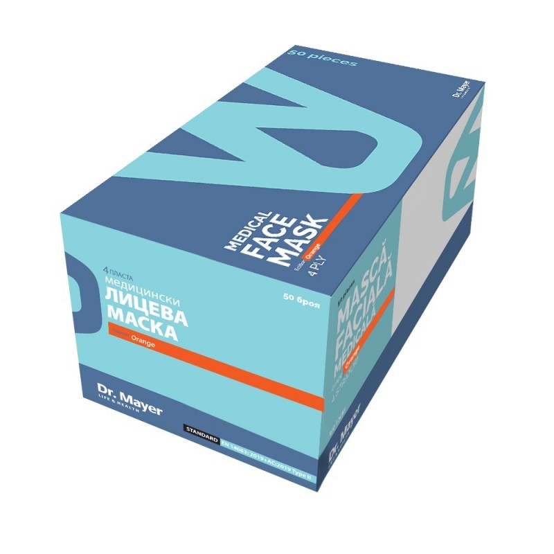 - Dr. Mayer 4 rétegű, narancssárga színű orvosi maszk – 1 doboz x 50 darab