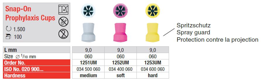 - Snap-On polipok fröccsenésgátló védelemmel, kopóelemek nélkül, fogászati lerakódások eltávolítására polírozó pasztával