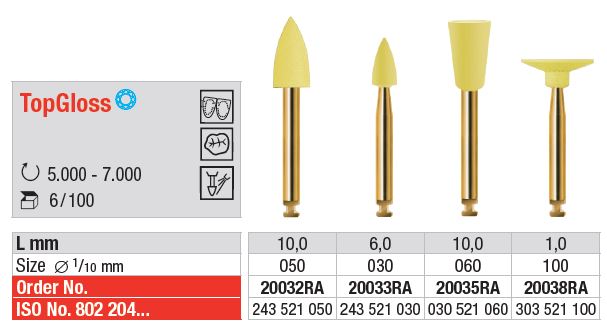 - Gyémánttal impregnált mikropolírozók a kompozitok és kompomerek kiváló fényességének elérése érdekében.