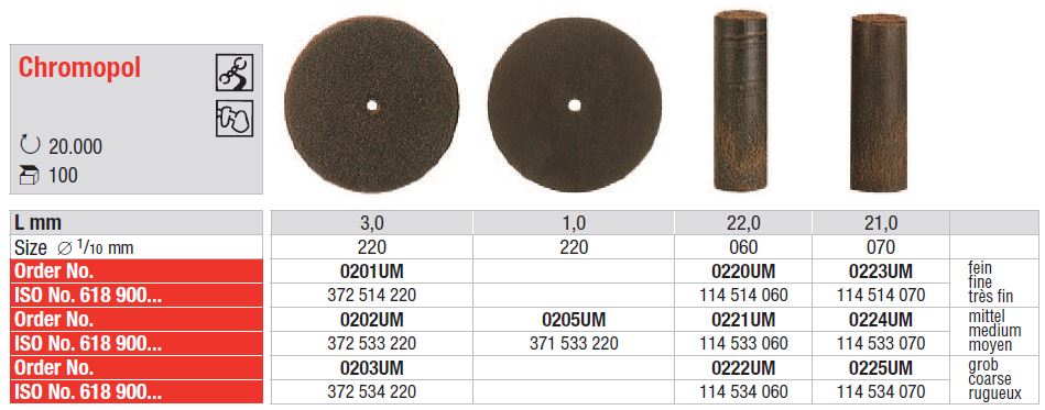 Chromopol – Nem rögzített csiszoló polipántok CrCo ötvözetekhez