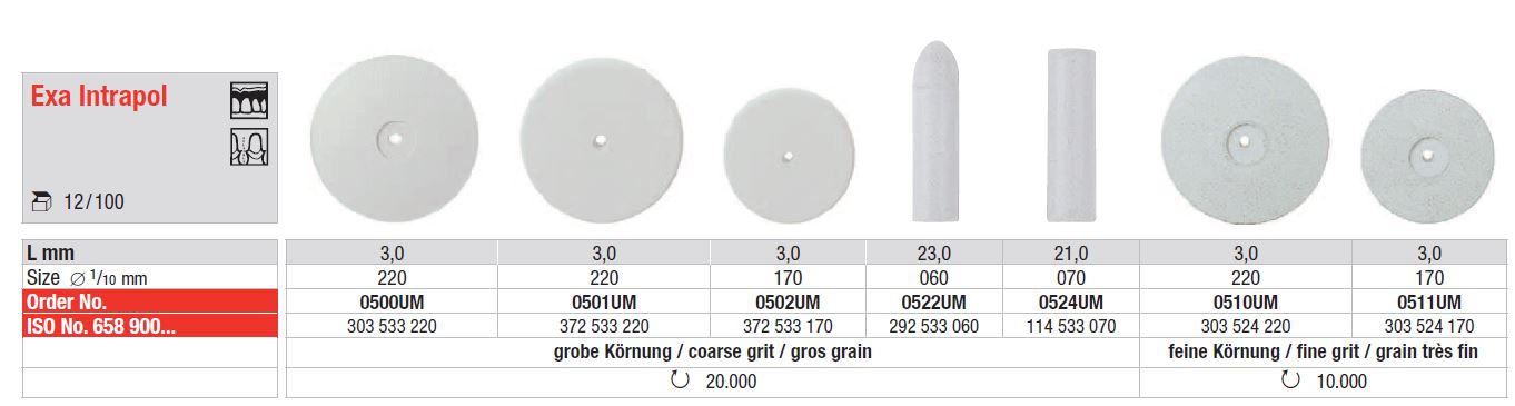Exa Intrapol – Univerzális, nem rögzített szilikon polírozók akril- és gipszgyantákhoz. Kiváló minőségű polírozószerekkel impregnálva, kezdeti redukcióhoz és simításhoz.