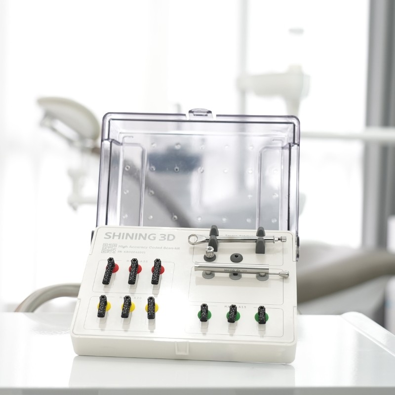 - Kódolt rendszer, amely az Aoralscan Elite intraorális szkennerrel a Shining 3D programon belül egy új munkafolyamaton keresztül működik