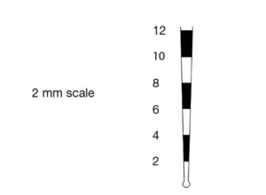 - A színes skála megkönnyíti az ínyzseb mérését