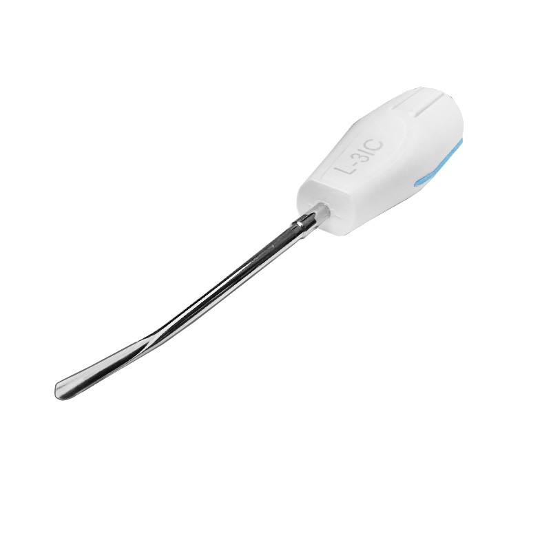 - A műszer aktív részét a fog hosszú tengelyével párhuzamosan kell bevezetni, elérve a gyökér apikális harmadát, és kis forgatásokkal elvágja az összes parodontális szalagot. Ez az alveolus kiszélesedéséhez vezet, és a gyökér nagyon könnyen eltávolítható.