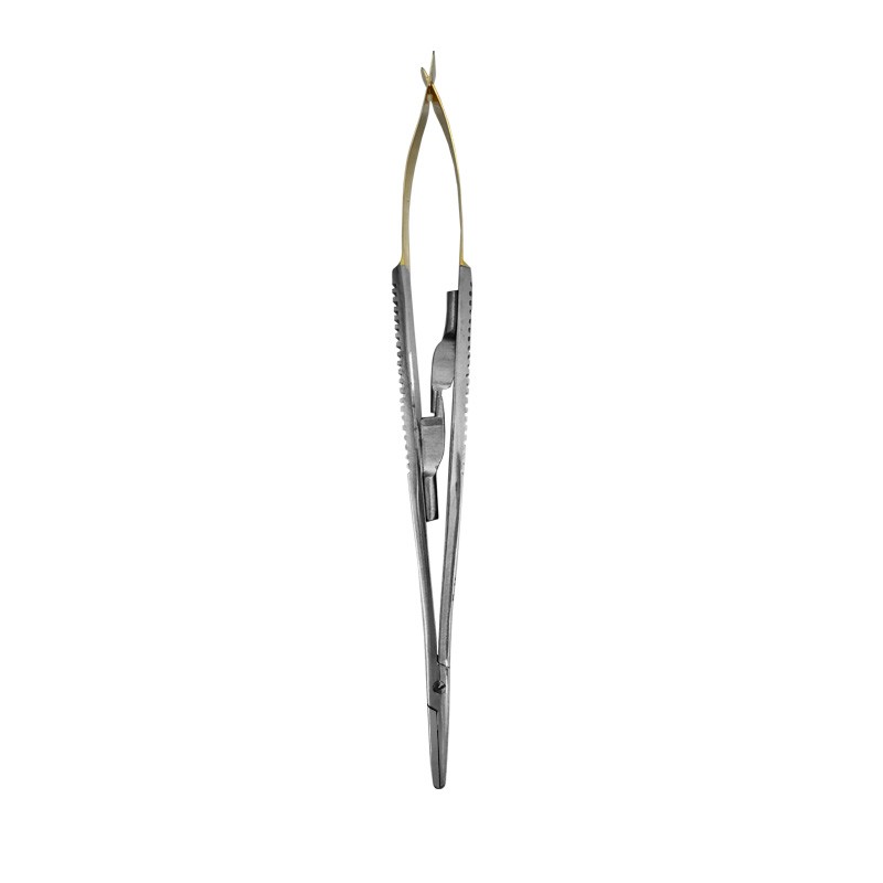 Tungstenkarbidból készült orvosi eszköz, amelyet sebészeti beavatkozások során használnak a tű tartására és mozgatására varrás közben.