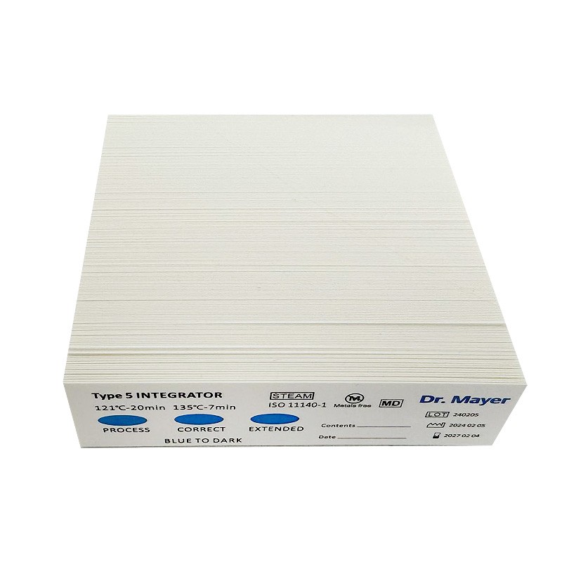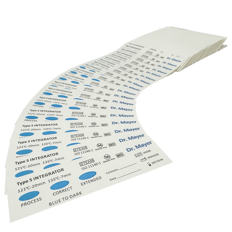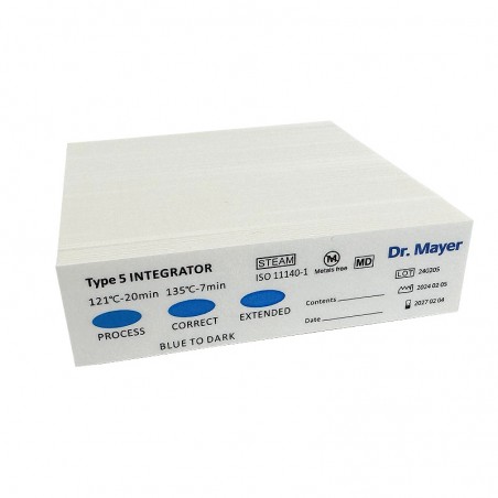 5. osztályú Dr. Mayer integrátor teszt – kémiai indikátor, amelyet az autoklávok sterilizálásának ellenőrzésére használnak.