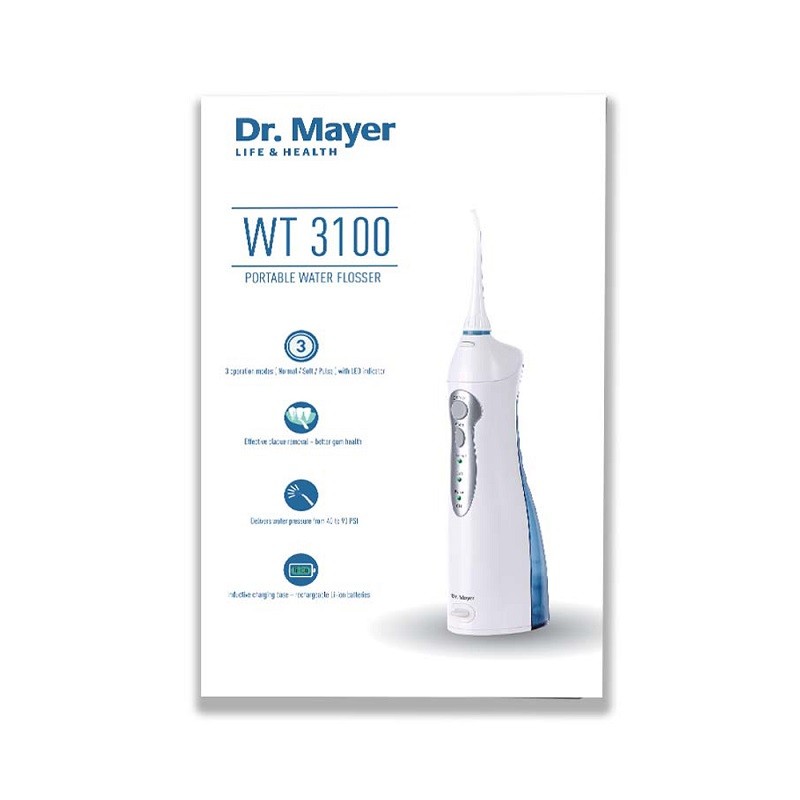 A Dr. Mayer WT3100 hordozható szájöblítő tisztítja a fogak közötti nehezen elérhető területeket és az íny mélyén lévő zsebeket, eltávolítva a fogszuvasodáshoz, ínybetegségekhez és rossz lehelethez vezető szennyeződéseket és fogkövet.