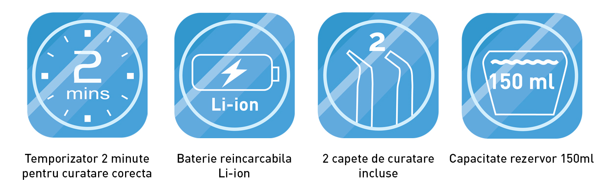 Ergonómikus, vízálló kialakítás Az ergonómikus kialakítású fogantyú és a 360°-ban forgatható tömlő lehetővé teszi a vízáramlás egyszerű szabályozását, hogy a száj minden részét elérje. |