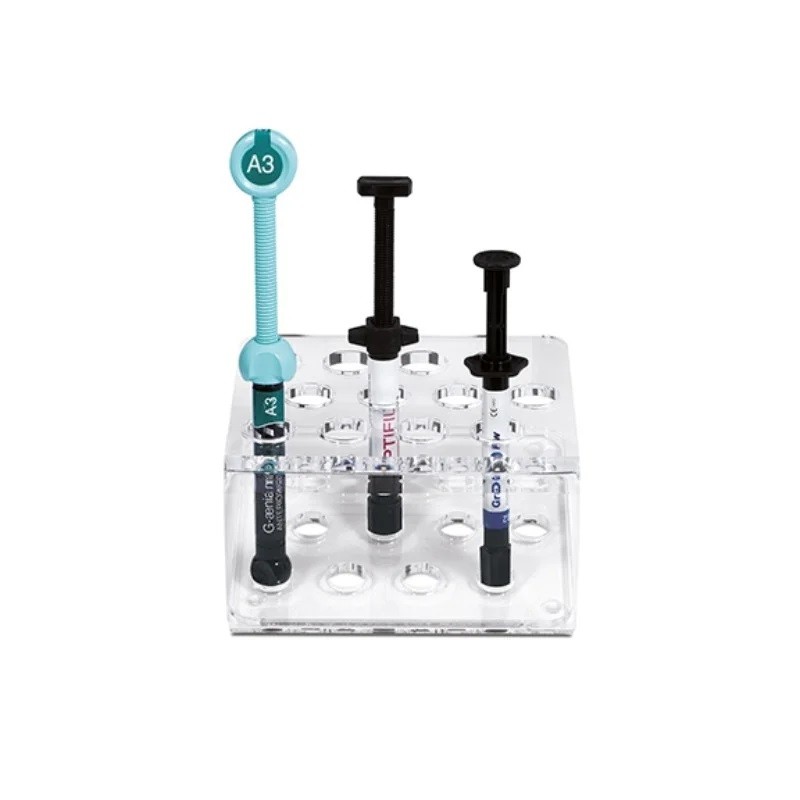 Kompozit fecskendők tárolására szolgáló tartó.