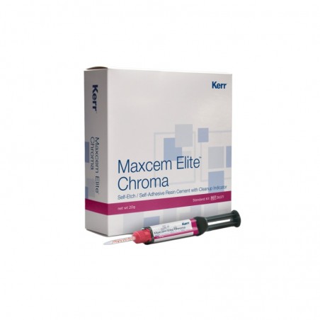- Maxcem Elite Chroma - 4 fecskendő x 5 g (2 átlátszó fecskendő + 1 fehér fecskendő + 1 sárga fecskendő) + 16 Automix hegy (normál) + 8 Automix hegy (széles) + 8 intraorális hegy + 8 gyökércsatorna hegy
