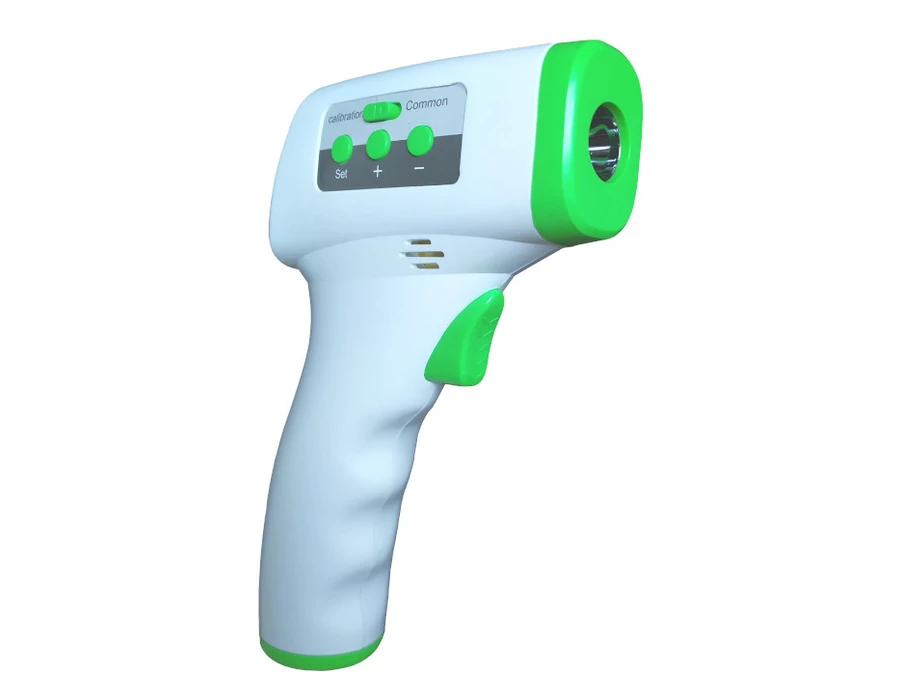 Az érintés nélkül működő infravörös hőmérővel egy személy testhőmérsékletét a helyiség hőmérsékletétől függetlenül meg lehet mérni a homlok bőrének infravörös sugárzása által.
