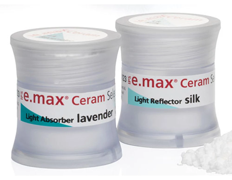 Alacsony olvadáspontú nano-flour-apatit üvegkerámia, elsősorban prés- és/vagy CAD/CAM technológiával készült restaurációk karakterizálására és leplezésére. Az anyag az élő fogéhoz hasonlatos kristálystruktúrával rendelkezik. Az apatit kristályok az egyes IPS e.max Ceram masszákban eltérő koncentrációban fordulnak elő, így a massza megválasztásával egyedülálló transzlucencia, világosság és opaleszcencia kombináció állítható be.