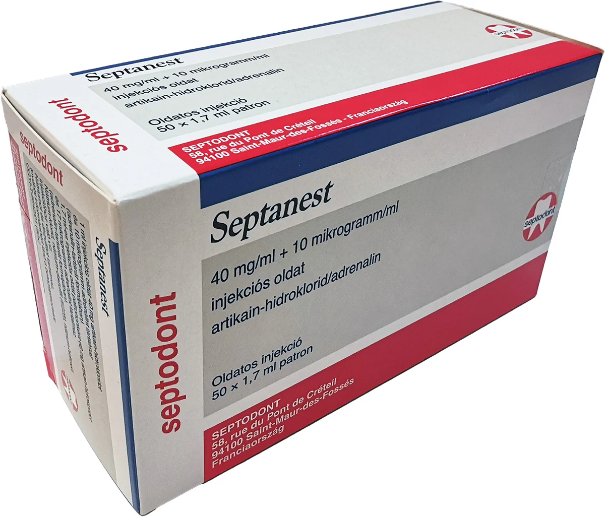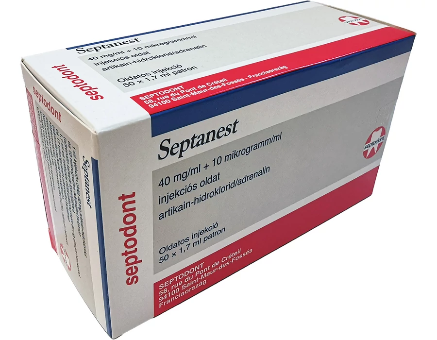 Septanest 40 mg/ml+10 mikrogramm/ml injekciós oldat, 50x1,7 ml patron