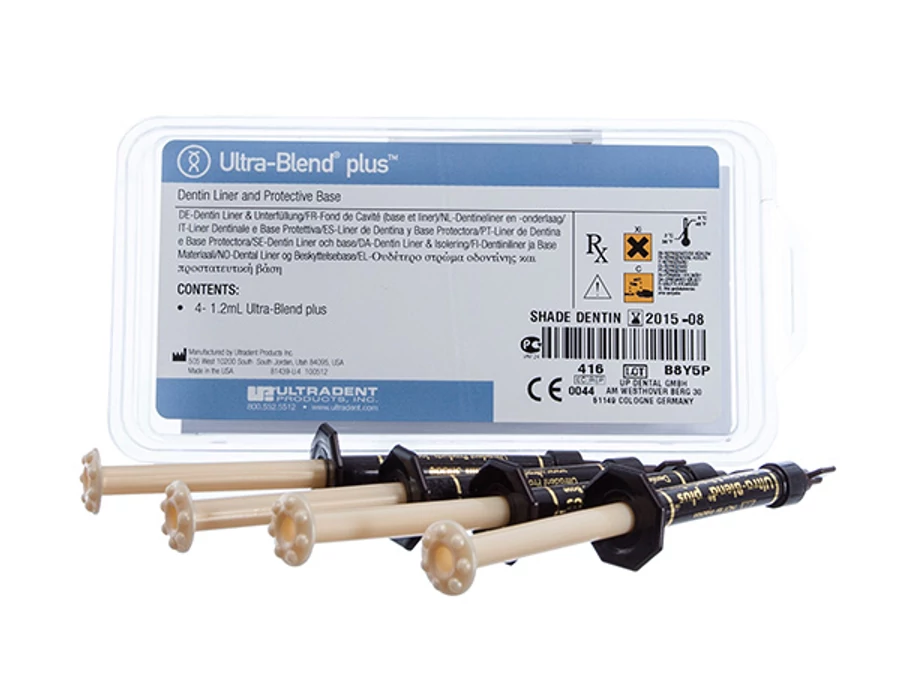 Az Ultra-Blend plus fényrekötő, röntgenárnyékot adó, kálcium-hidroxid tartalmú anyag uretán- dimetakrilát bázisban. Más alábélelőkkel összehasonlítva töltőanyagtartalma magas, a minimális zsugorodás és a minél nagyobb fokú kálciumleadás érdekében.